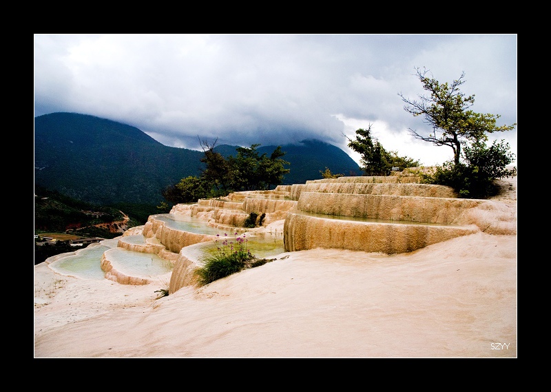 北方郎开车,今天一大早就下雨,问了酒店服务台,服务员说这两天天气都不好,担心连阴雨引起塌方,不敢等待,也许只能赶路了。先到中石油加油站加满30升的备用油桶,防备路上遇到麻烦。很快路过纳帕海,雨中的纳帕海静谧安详。天在下雨,无法拍摄,继续赶路,这时接到主美的问候短信,给他回了短信,介绍了一下我们的情况。