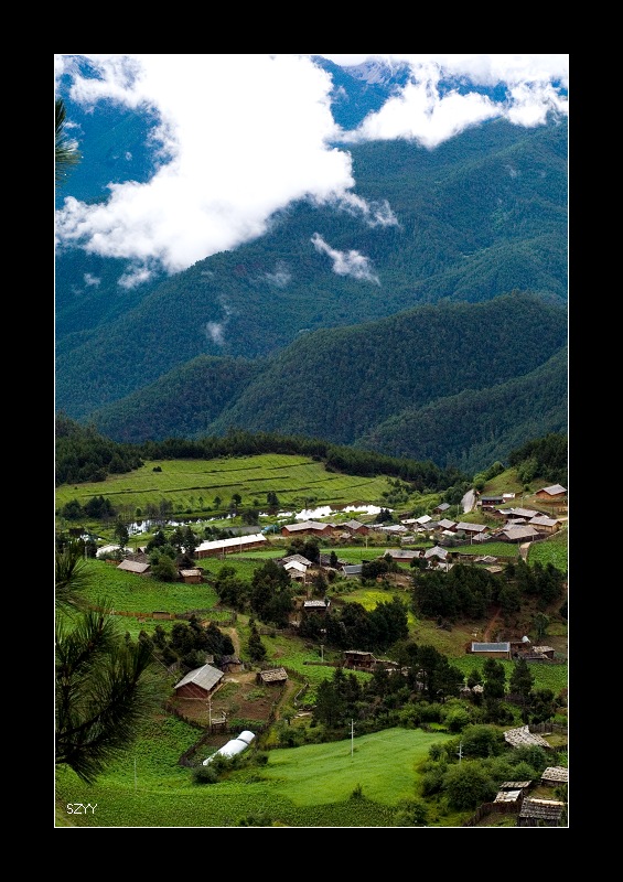 绕过一个弯路,大山深处突然展现一个城镇,根据规模,我们估计是德钦到了。下了山,果然是德钦,这时已经是下午2点50左右,赶快吃饭,赶到十公里外的飞来寺,希望能拍到梅里神山。