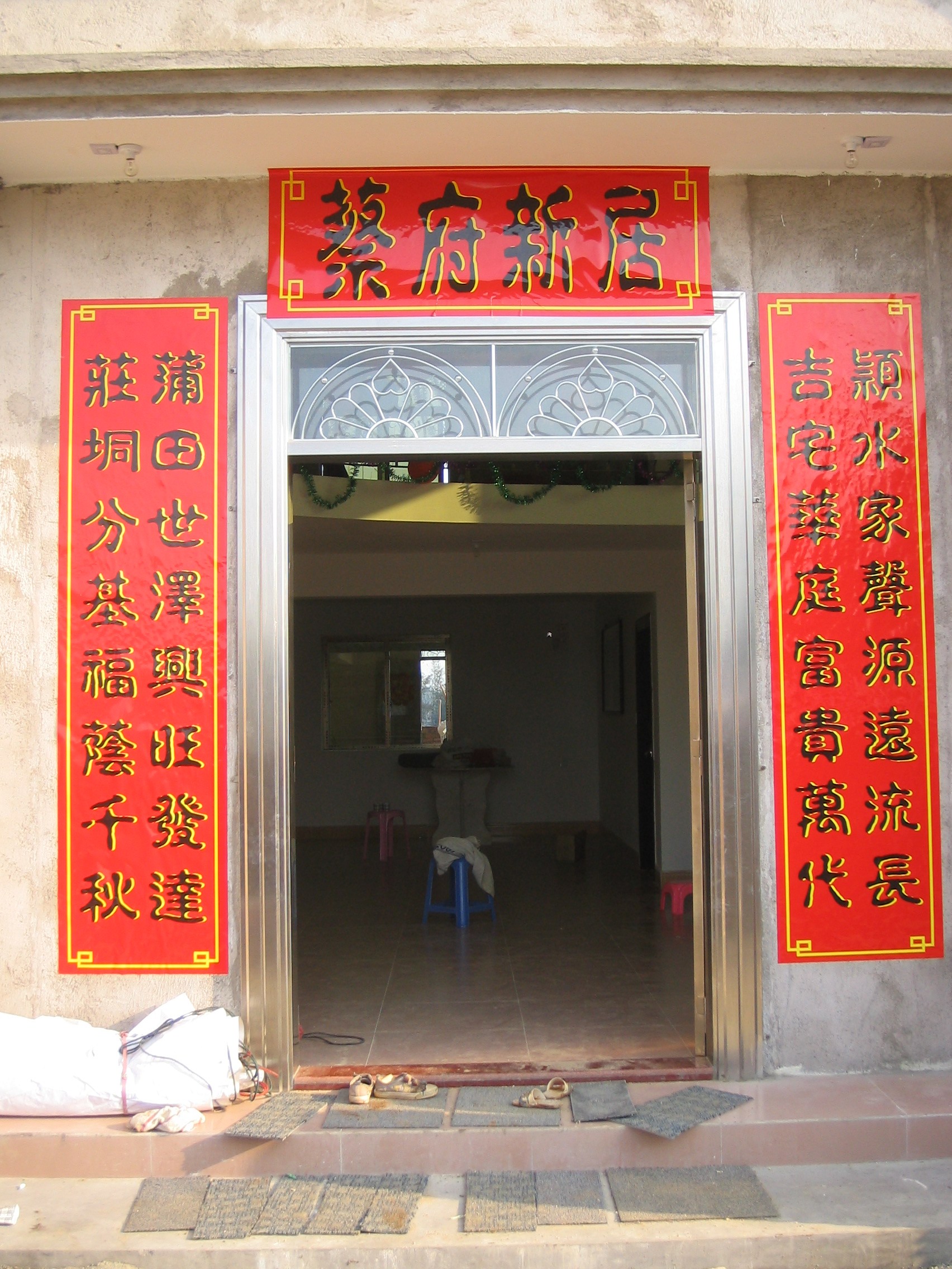 大宗祠建P垌内村屯,坐西向东。入伙对联:长发其祥,暖(?)得我所。大宗祠门联:济阳欣庆,f垌分基。蔡族济阳郡。