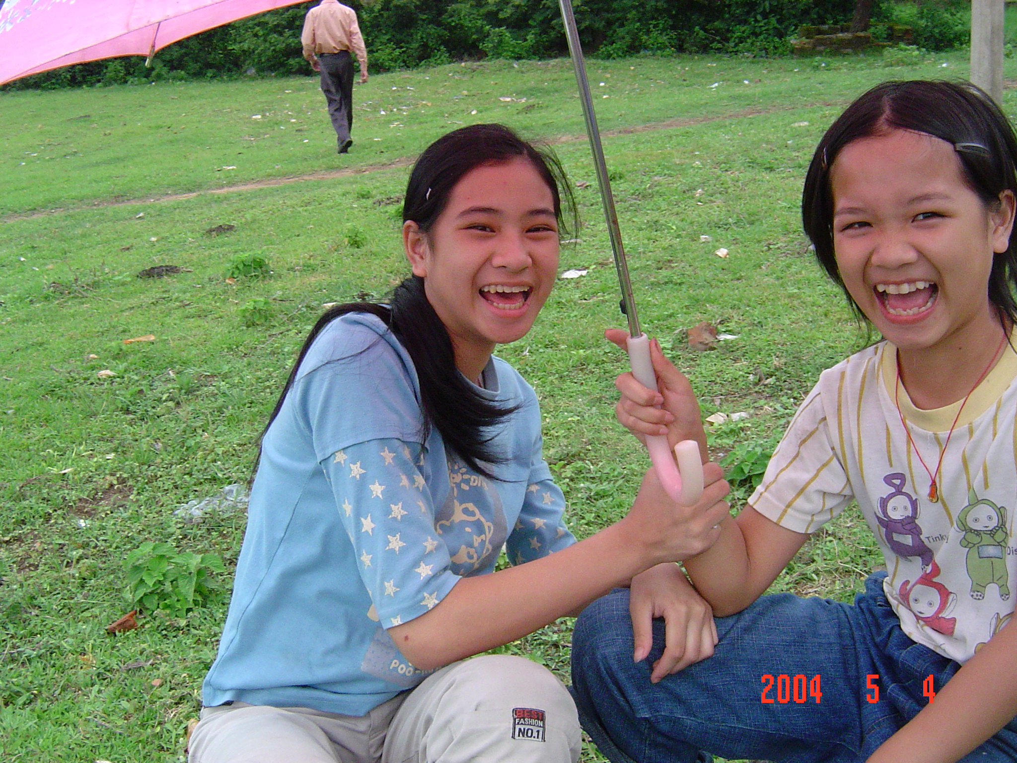 2004年5月4日,在电城镇P垌的宗祠前拍摄的侄女?或姑太?她们是从林头蔡家叔孙来P垌祭祖的.我不知她们的辈份.我是24世的.