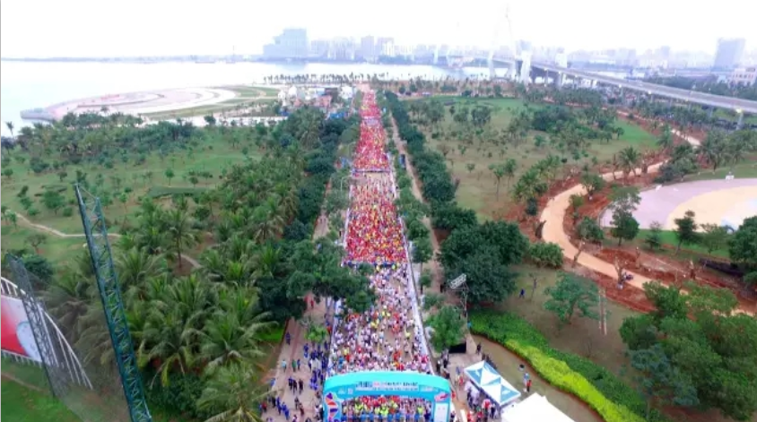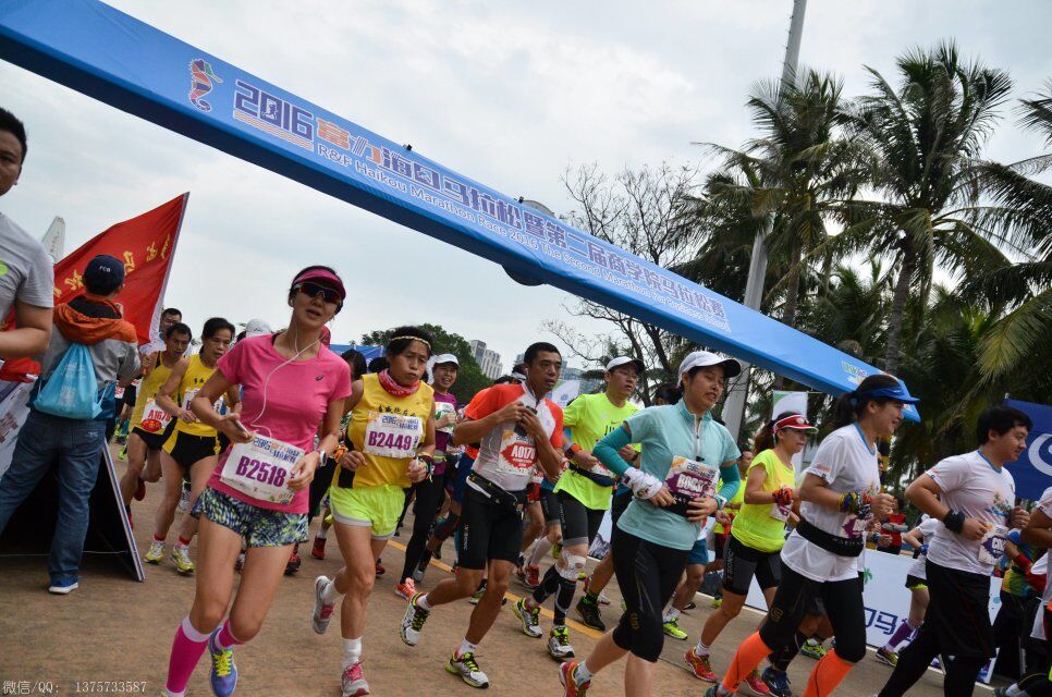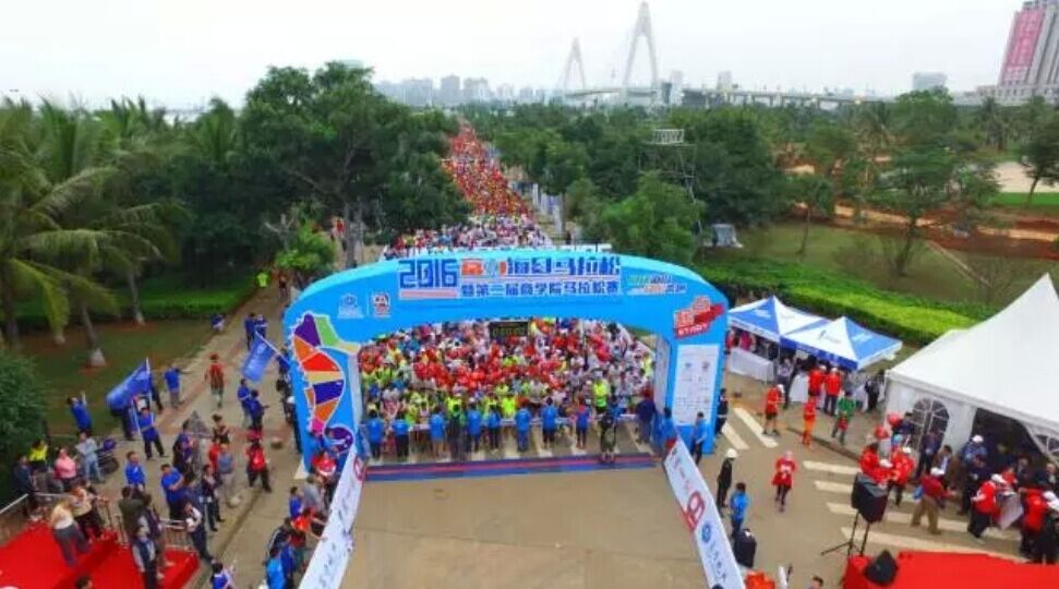 2016年1月10日上午8时,海口马拉松在海口世纪公园鸣枪开跑。海口马拉松共报名10038人,其中,全程赛1727人,半程赛2693人,迷你赛5618人,选手来自15个国家和地区,包含中国的港、澳、台地区选手,其中来自电白的水东湾跑团13位跑友也报名参加了这次盛事。