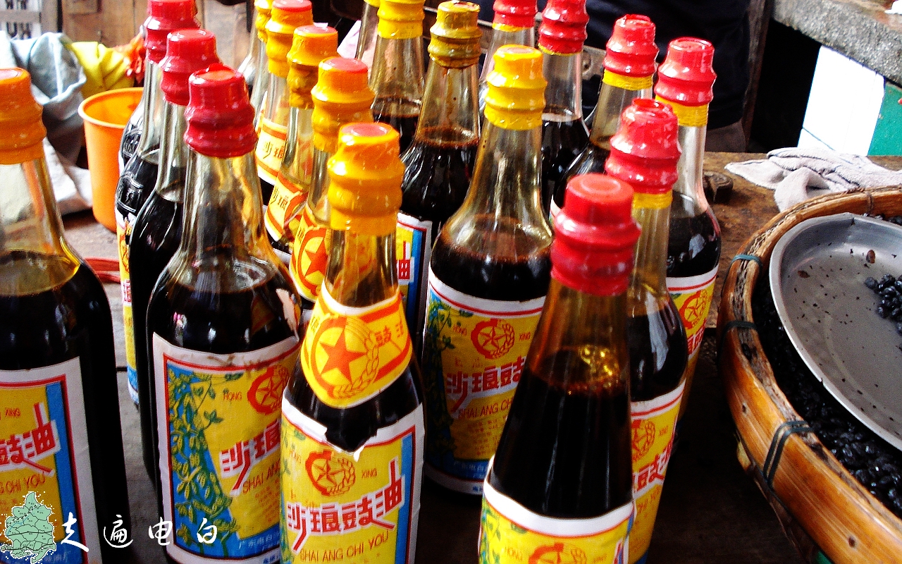 沙琅鼓油历史悠久,享誉电白。瞧样子毫不起眼,一问价钱,竟然要十五块一瓶,令人砸舌不已。