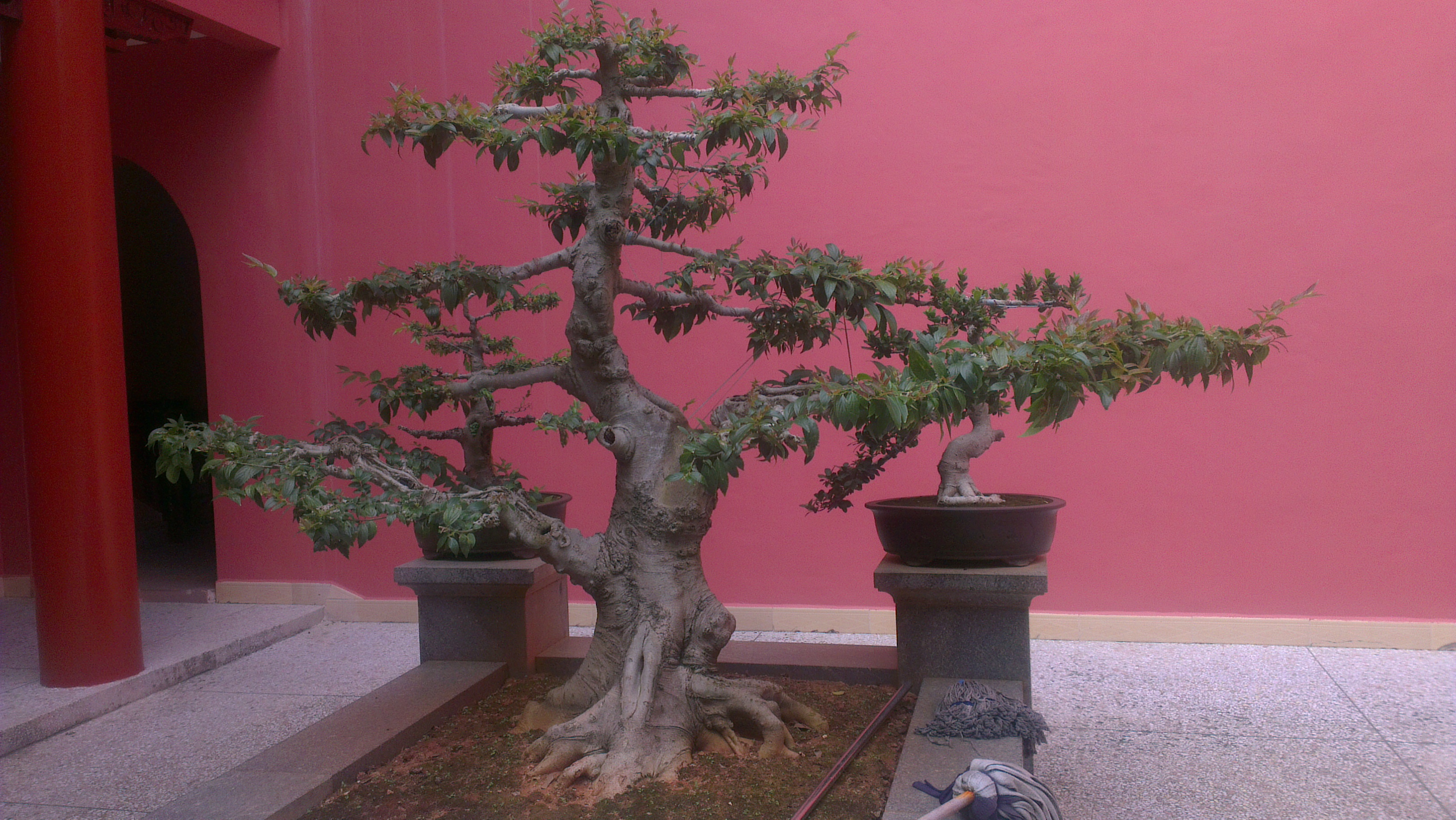 图为寺内一楼摆放的盆景