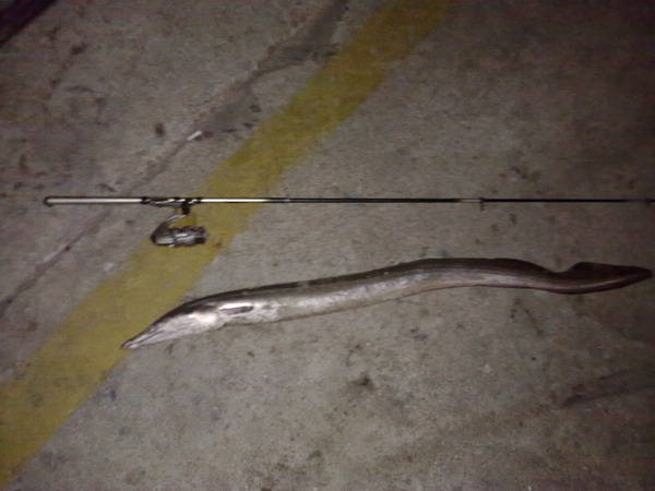 这东西不好搞,中三条都没一条能拉起来的.牙齿太厉害,线迅速给咬断,又长又滑溜,用抄网也捞不到,跑掉好多大的.